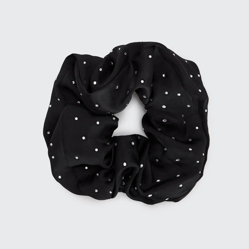 Satin Rhinestone Brunch Scrunchie - Black by