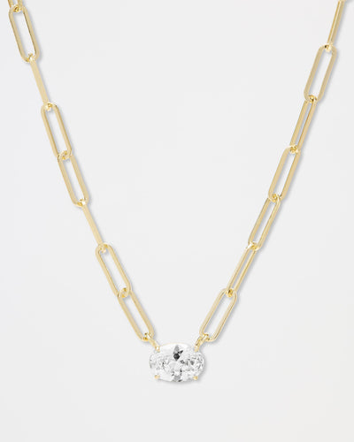 Hello Gorgeous Samantha Chain Necklace - Gold|White Diamondettes