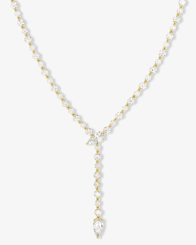 Duchess Lariat Tennis Necklace - Gold|White Diamondettes