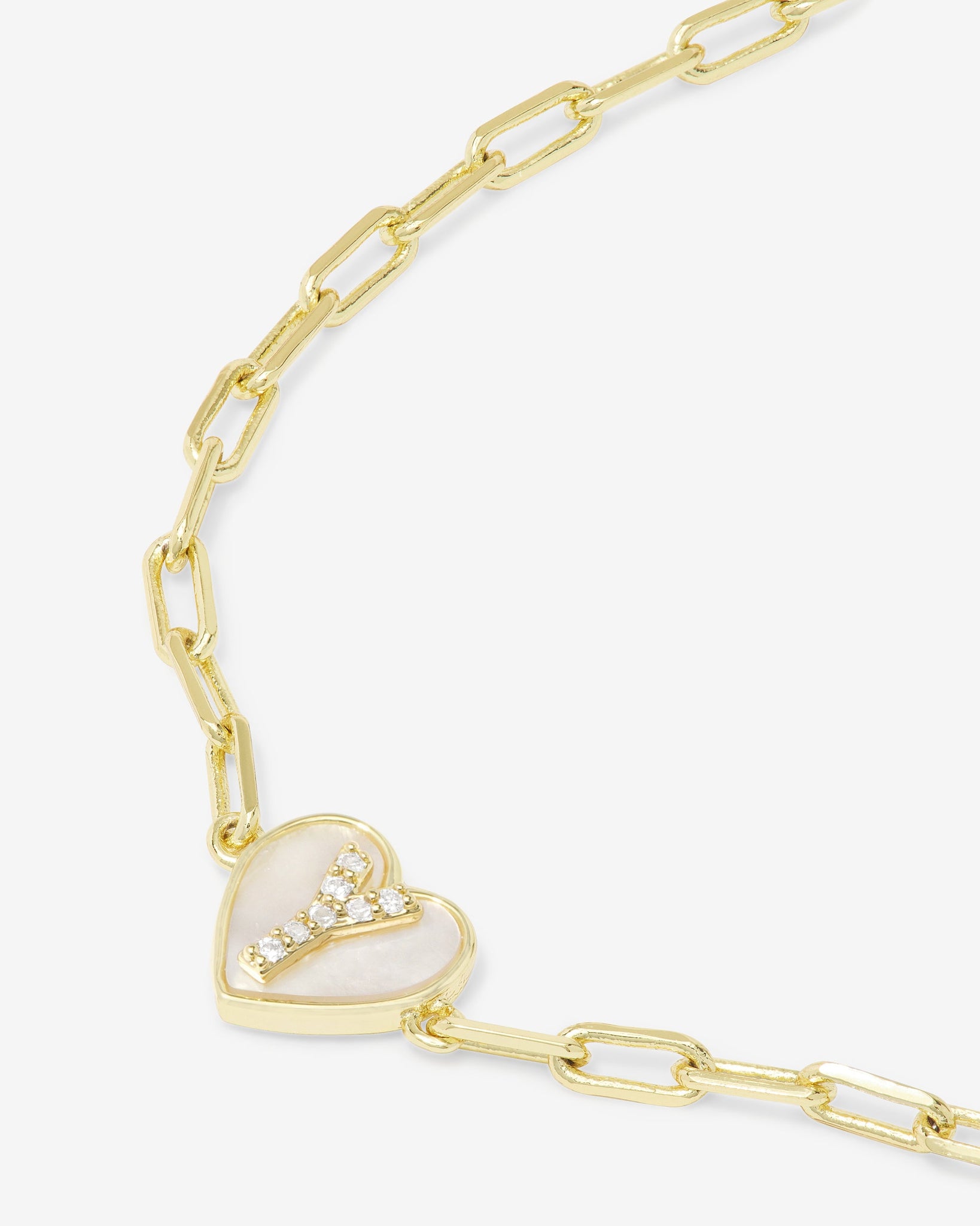 Little Letters, BIG meaning. Inspired by our best-selling Love Letters Necklaces, this dainty bracelet features a glowing mother-of-pearl heart and a pavé initial for that perfect mix of sweet and timeless. Go ahead, wear your heart (and your initials) on your sleeve.