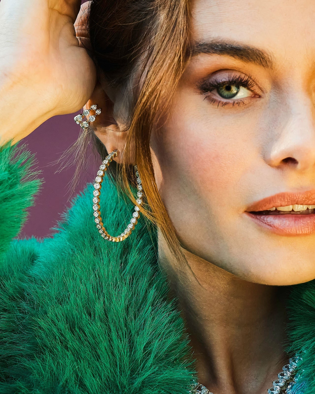 Our best-selling Baroness Collection NEEDED a hoop. With bezel-set simulated diamonds the Baroness 2” Hoops dazzle from all angles and in the perfect larger size to make a statement no matter the occasion, day or night.