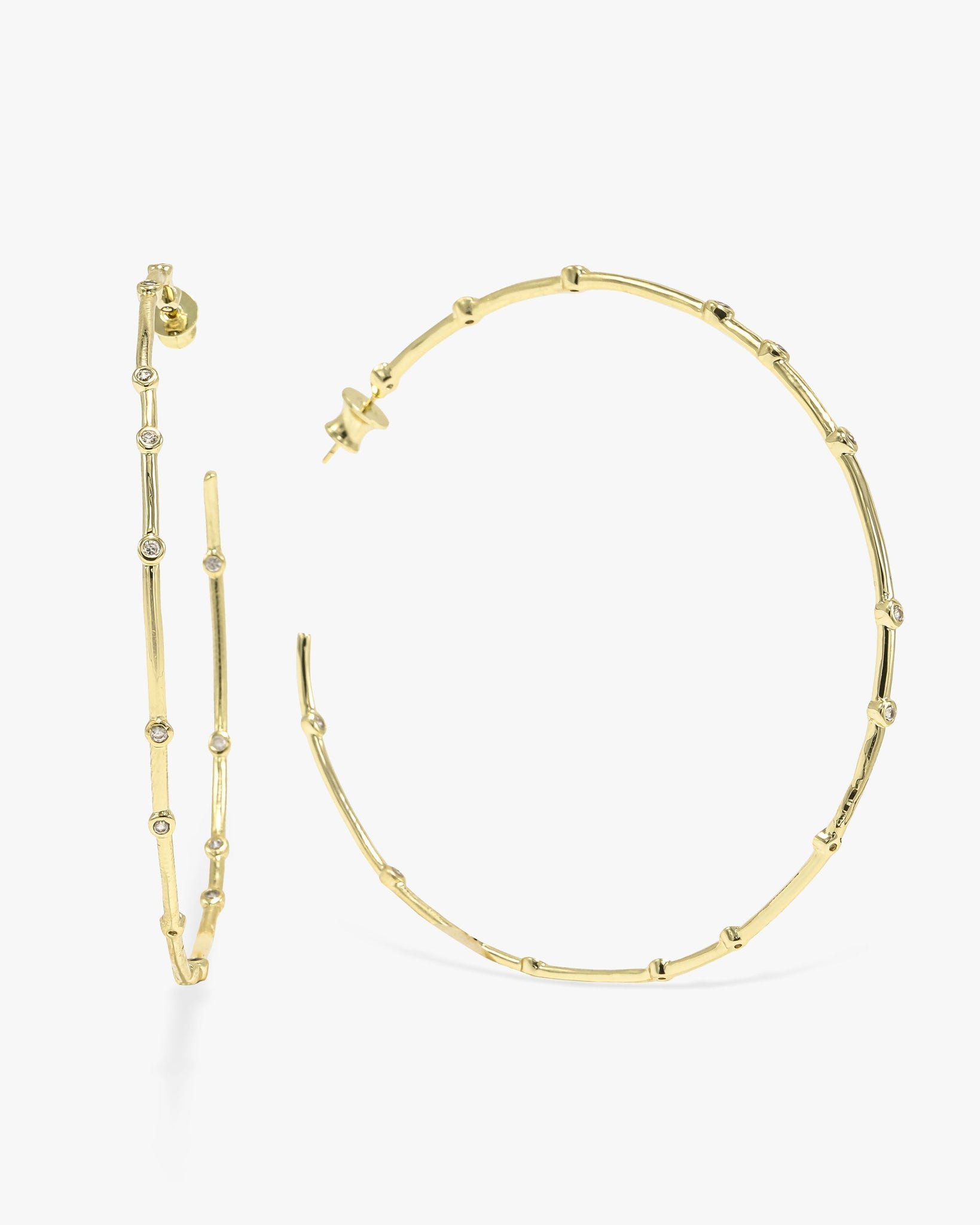 These Big Ass Hoops are a Melinda classic! Featuring a slim design and sprinkled with our simulated diamonds, these 3" hoops will take you from day to night effortlessly. DETAILS: