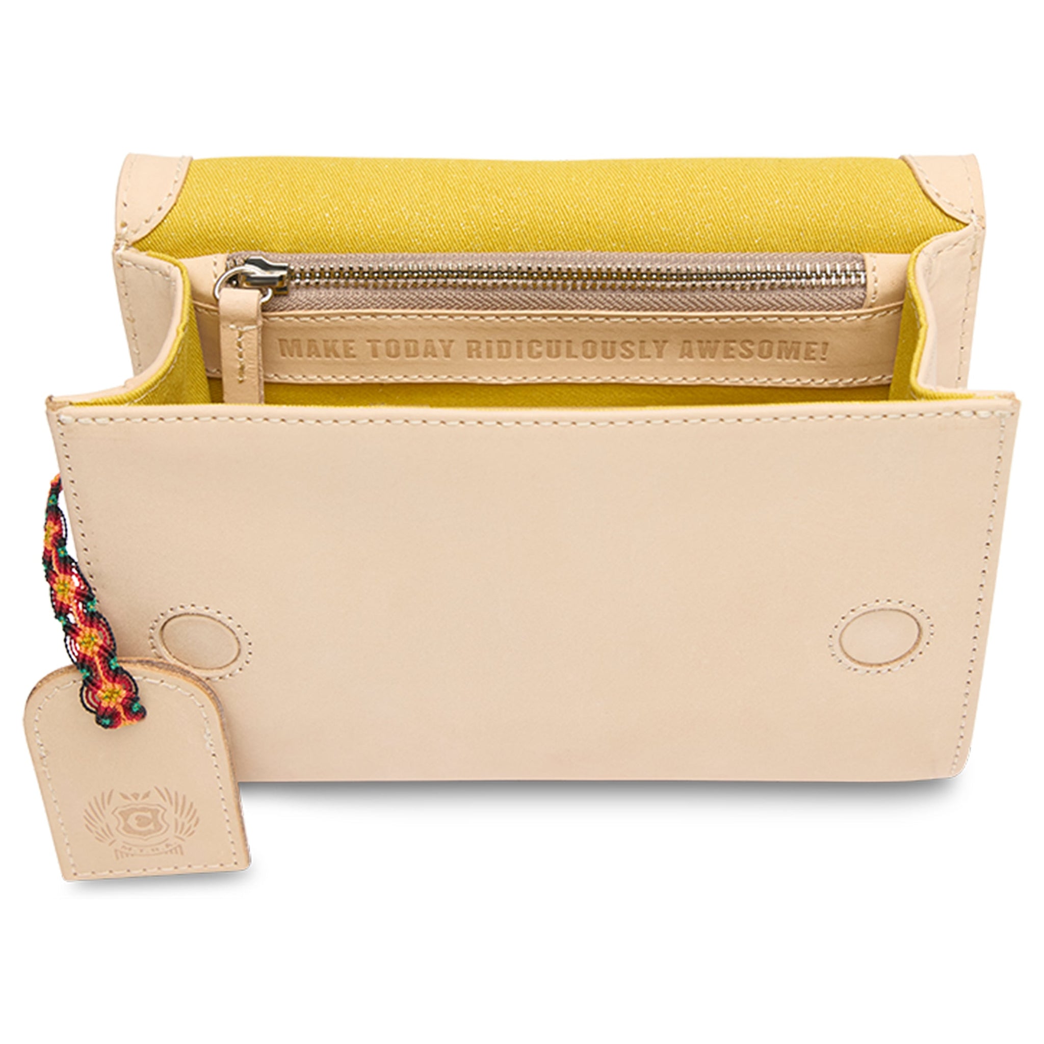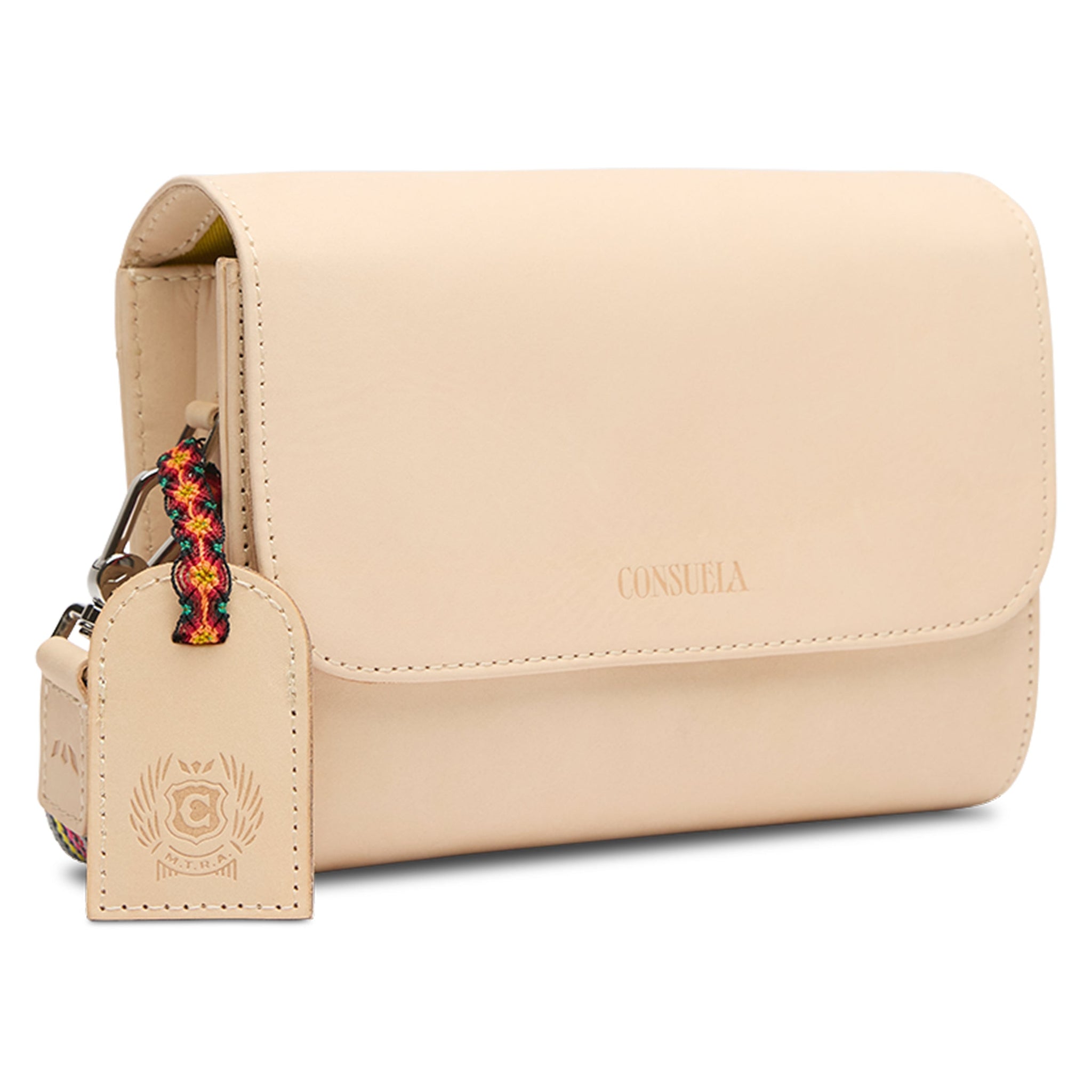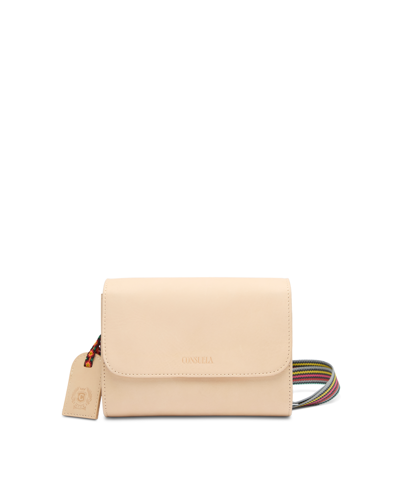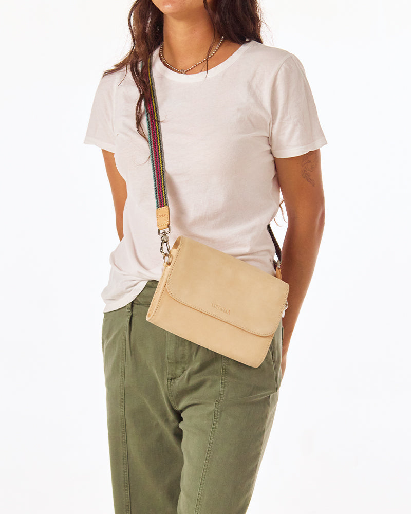 - Adjustable woven crossbody strap