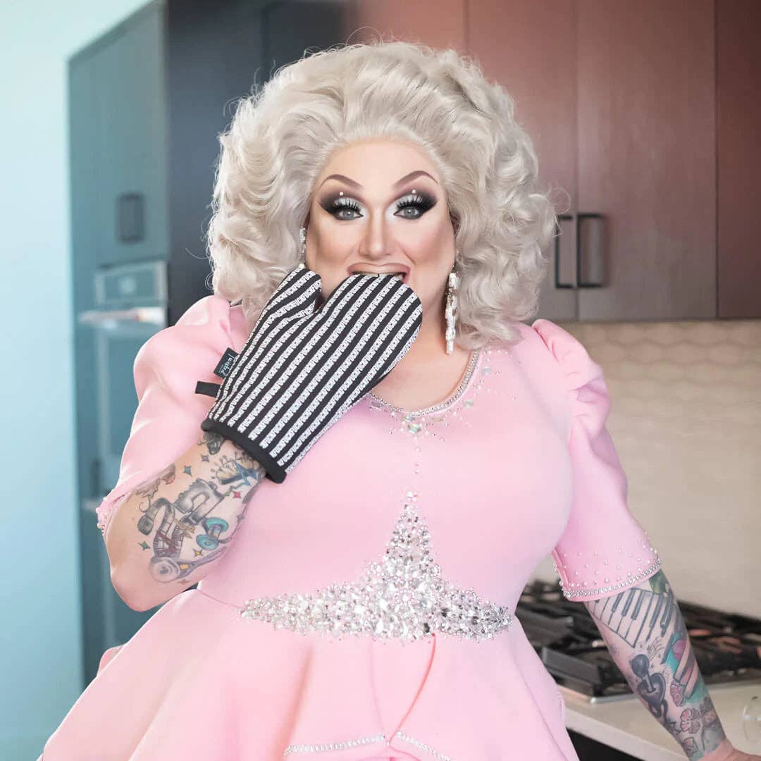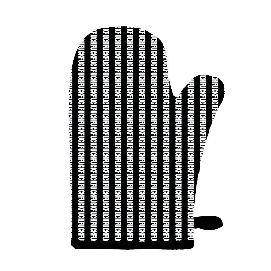 Cook your favorite meals in the kitchen with a little extra spice! Our fuck striped oven mitt features an all-cotton, comfy, natural-fitting shape. Inside they have extra-quilted insulation so hands stay cool when handling hot kitchen utensils or appliances. Screen-printed using eco-friendly inks, these oven mitts bring classic typography and the irreverent sentiment fuck to the cooking space. * 100% Cotton Canvas with 100% Polyester Filling * 7.5"x 12" approx. * Screen-printed with eco-friendly dyes * Handy loop for easy hanging * Thick batting interior for heat resistance * Design reads: Fuck