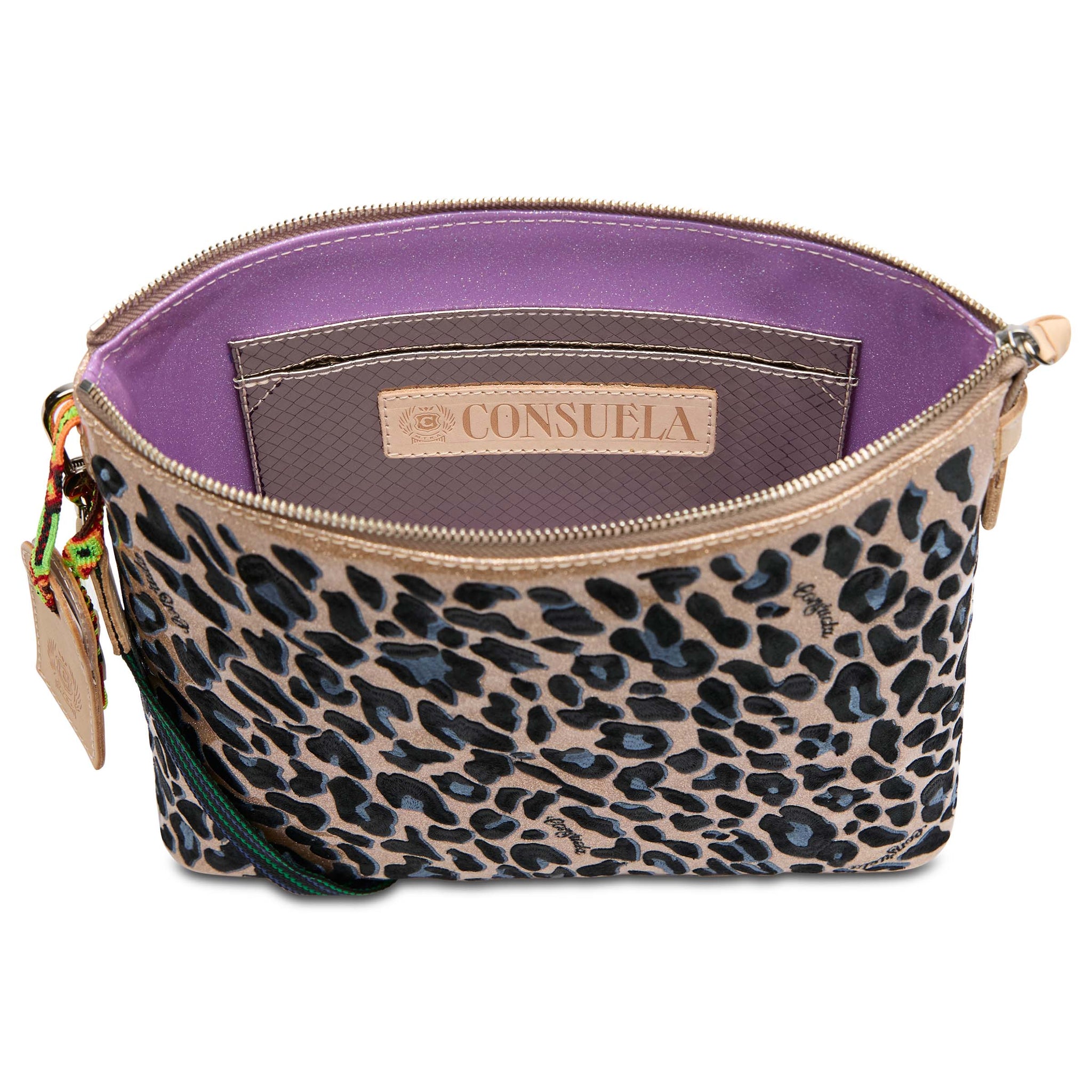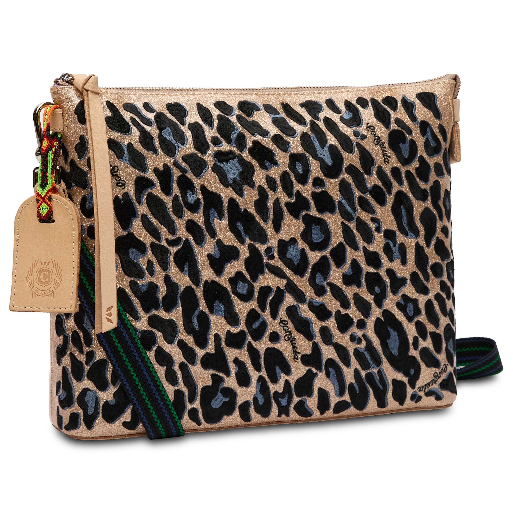 - Signature animal print embroidery on a gold glitter exterior