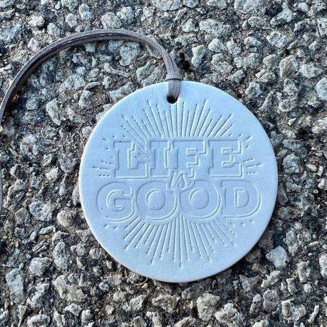 Our Air Flairs are 3.5" in diameter, handmade from 100% full grain vegetable tanned leather. They are infused with premium fragrance oil, releasing a lasting scent to awaken the senses.
