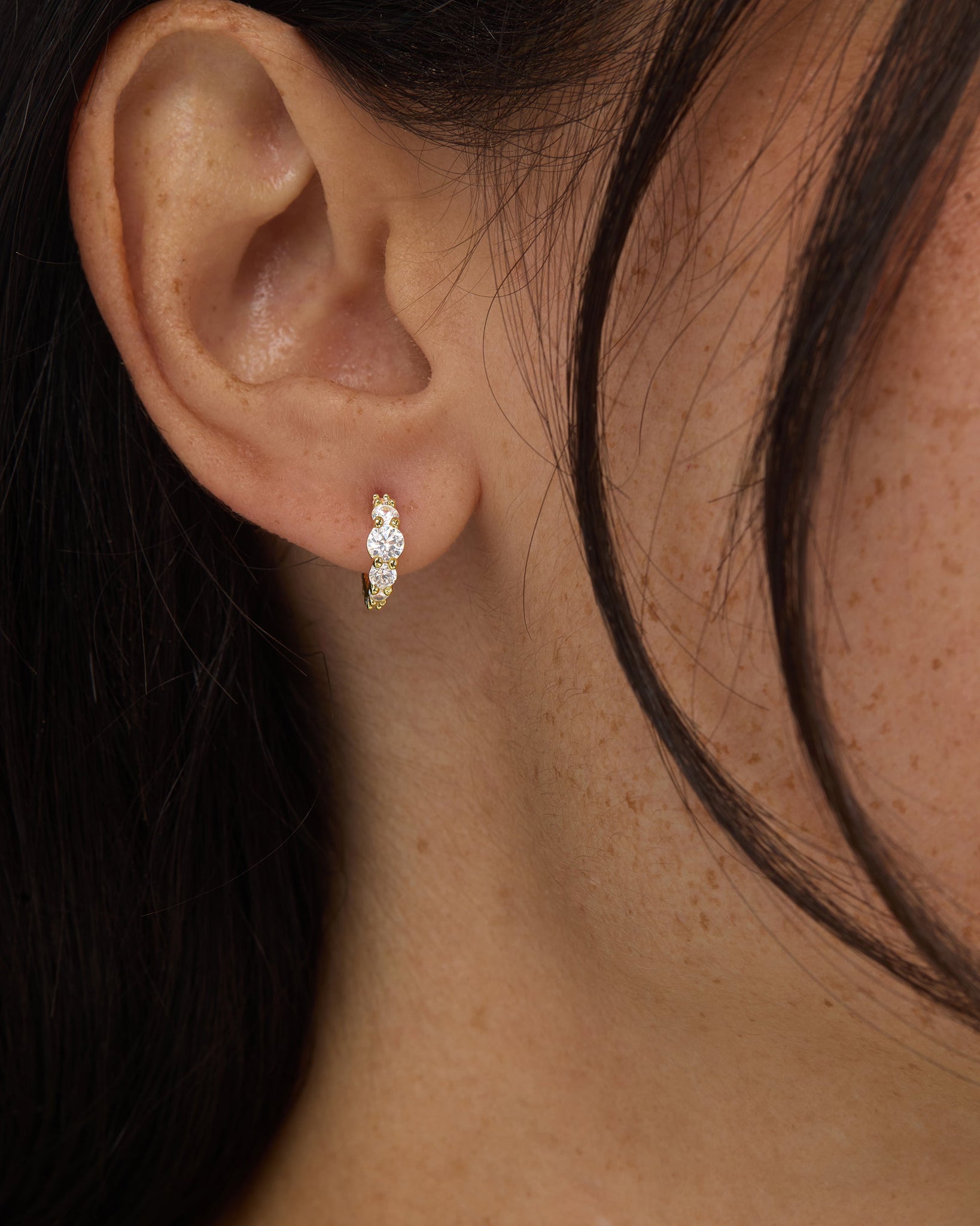 Our forever favorite Oh She Fancy Hoops just graduated to the next level of dazzling. The Oh She Fancy Graduated Huggies may be small in size, but they're bursting with personality, featuring diamonds that gracefully transition from demure to dazzling. Say hello to your new go-to accessory for adding a touch of sparkle and style to any look, all in a snug, chic package!