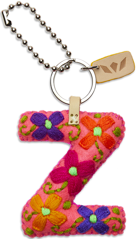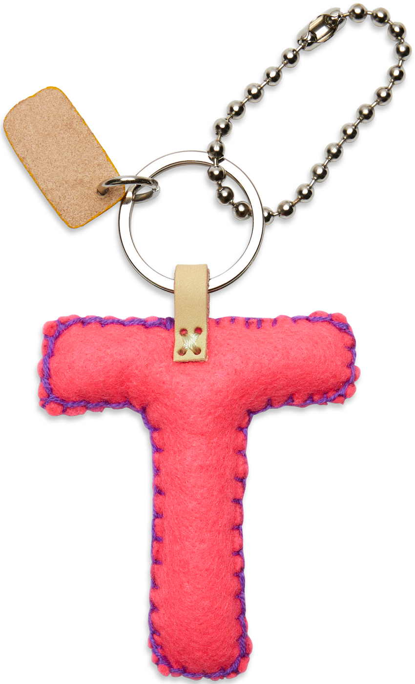 - Hand-embroidered pink felt letter charm (colors may vary)