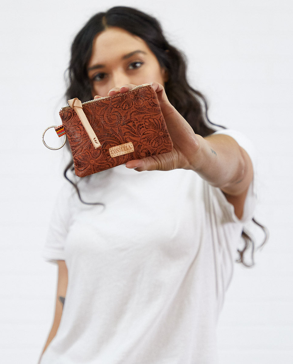 Our Sally Pouch is an all-in-one, easy bag to keep your cash and keys organized on the go! The metal keyring takes you from purse to keys with ease!