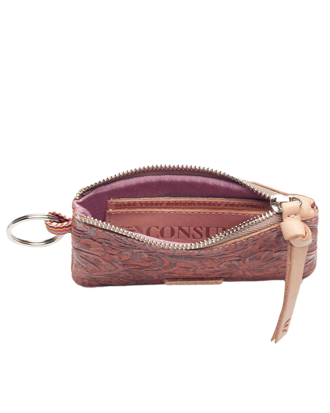 Our Sally Pouch is an all-in-one, easy bag to keep your cash and keys organized on the go! The metal keyring takes you from purse to keys with ease!
