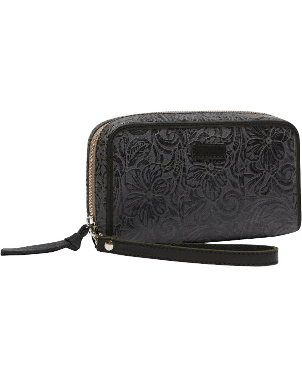 This accessory is functional for everyday use on its own or great for organization inside a larger bag. The Wristlet Wallet expands when unzipped to allow ample space for card organization and can be held by the included wristlet strap. Diego natural leather trim and wristlet strap with 12 card slots. Interior slide pockets with 4 hidden slide pockets.