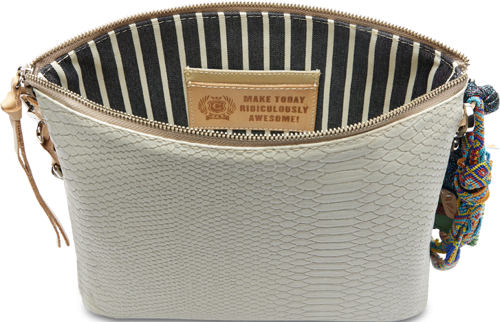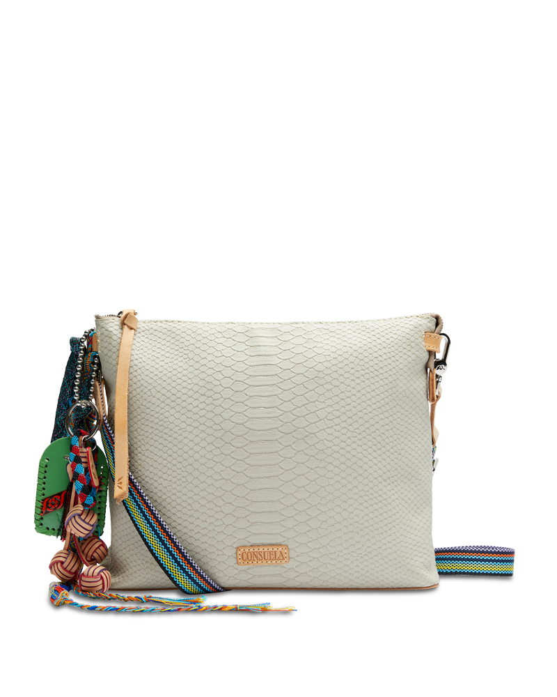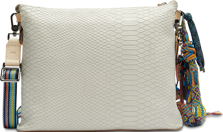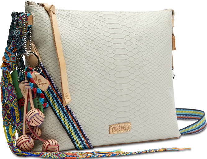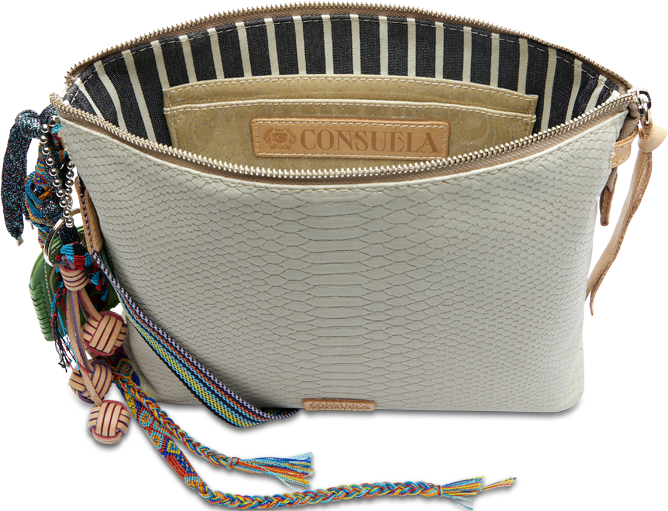 Our Thunderbird Downtown Crossbody is festival and concert-ready! With a removable woven strap, this bag can be worn as a crossbody or carried as an oversized clutch. It features a sleek silhouette in embossed snake print and an interior slide pocket for your phone or small items.