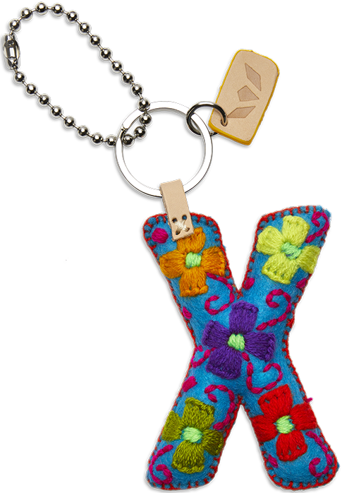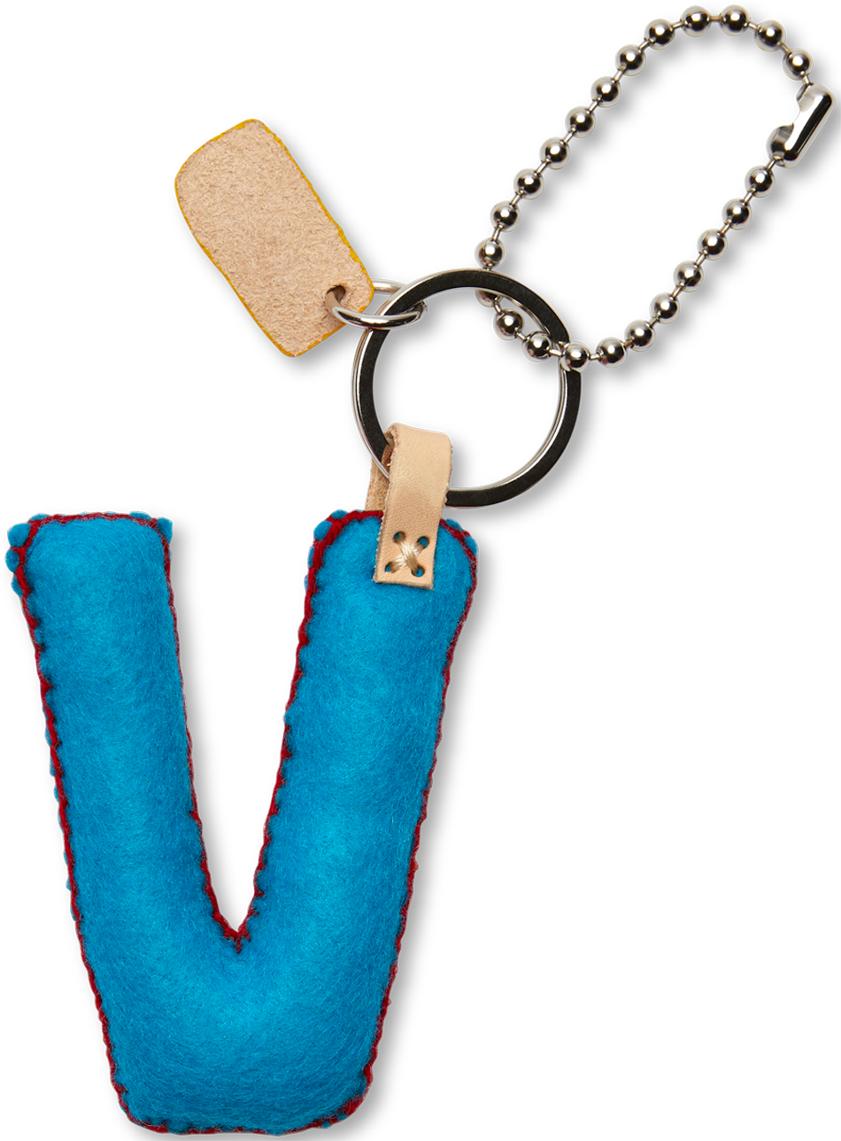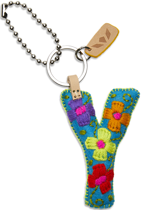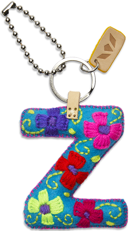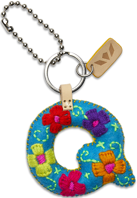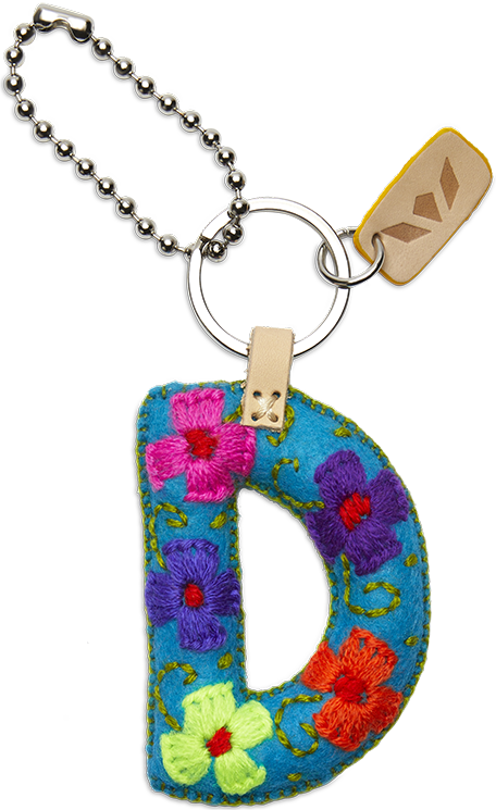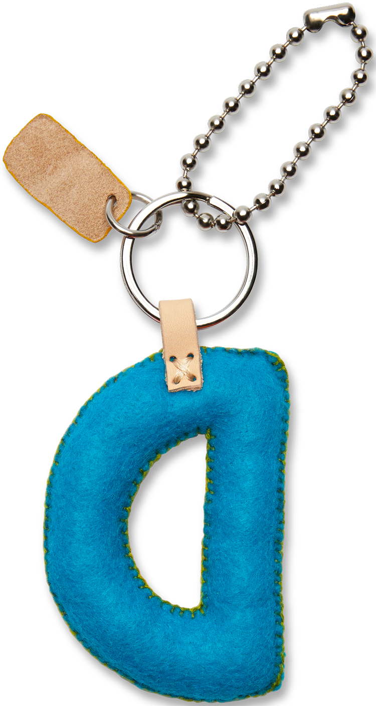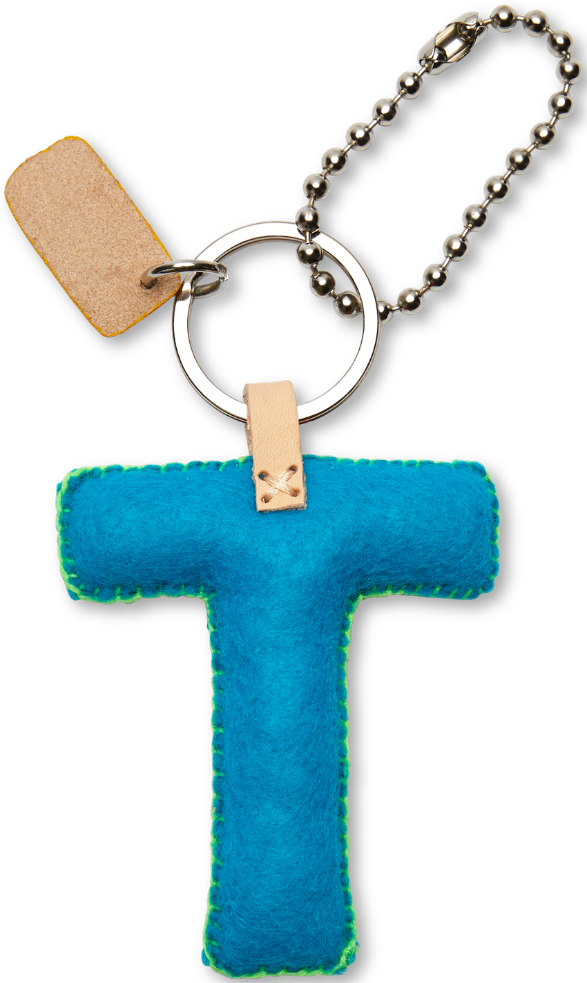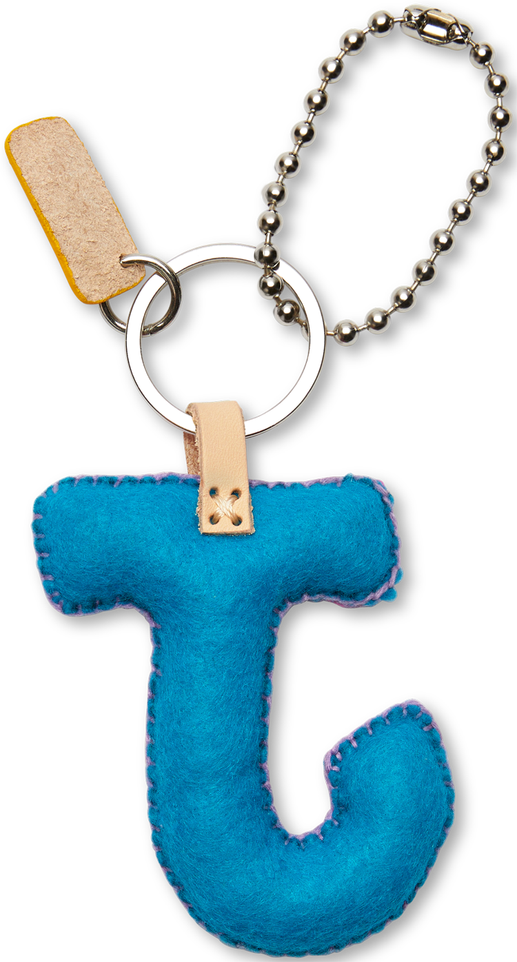- Hand-embroidered turquoise felt letter charm (colors may vary)