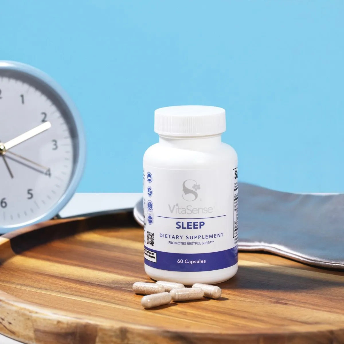 VitaSense™ Sleep Supplement is formulated to help relax the mind and promote restful sleep. Our unique proprietary blend helps with better sleep, creating a sense of calm, and encouraging the mind to relax, all contributing to helping get a quality night’s rest.
